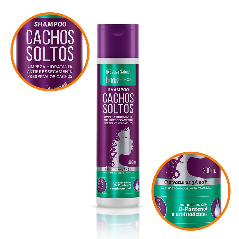 O Shampoo Cachos Soltos limpa sem ressecar os fios, preserva os cachos e mantém a maciez